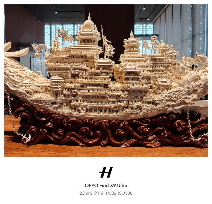 另外,哈苏超清情状是主摄的中枢加分项,开启2亿像素超清拍摄后,拍摄结构复杂的工艺品等这么细节丰富的画面,放大数倍后画面依旧尖锐、纹理明晰,细节保留完整。