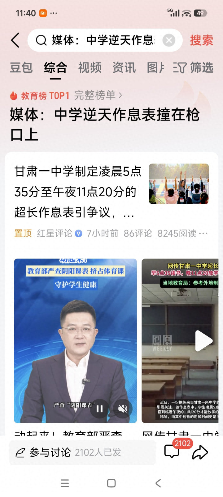 ##媒体:中学逆天作息表撞在枪口上##教授#育东谈主