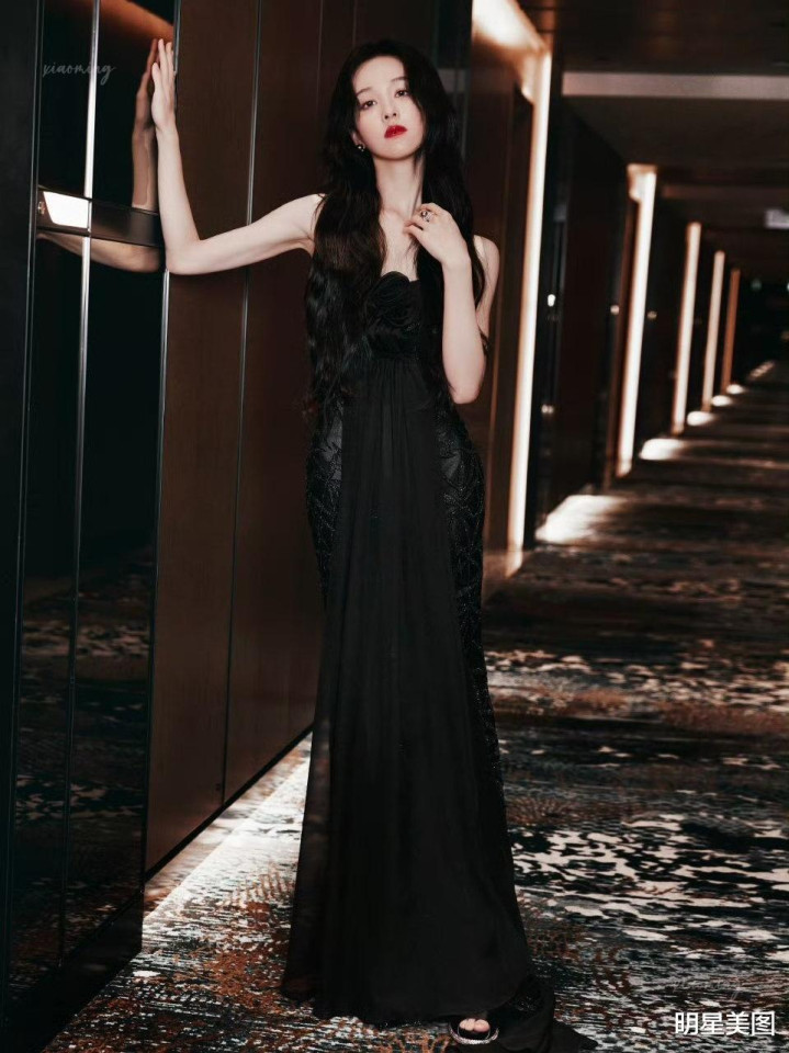 米兰体育官网 陈齐灵墨发垂落黑裙勾画, 红唇慵懒目光疏离, 撩东谈主韵味我方品