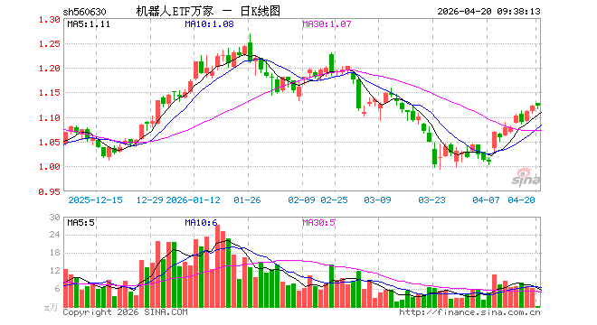 4月20日,机器东说念主ETF万家(560630)开盘涨0.45%,报1.128元。机器东说念主ETF万家(560630)重仓股方面,科大讯飞开盘跌0.08%,汇川技能涨0.52%,拓普集团涨0.72%,大华股份跌1.62%,巨室激光涨1.18%,双环传动涨0.41%,米兰体育石头科技涨0.00%,中控技能跌0.18%,绿的谐波涨0.62%,机器东说念主涨0.27%。
