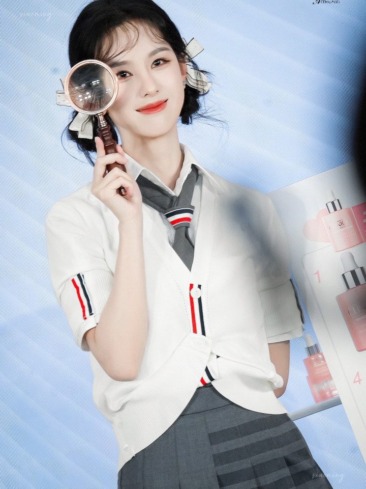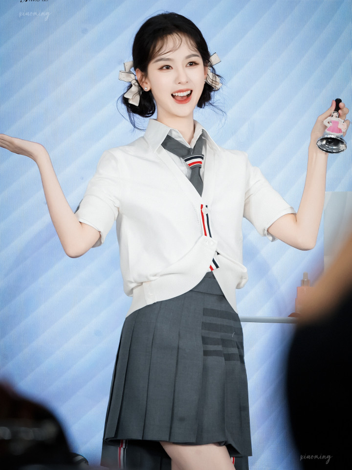 陈王人灵像早晨第一缕光穿过教室,白衫灰裙蝴蝶结,MILAN SPORTS干净得让东谈主心动