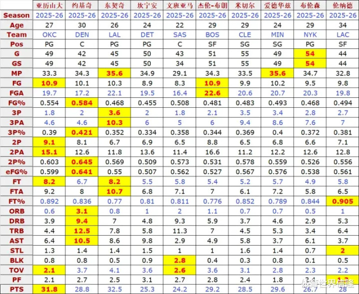 亚历山大场均31.7分4.5板6.5助攻,场均得分仅次于东契奇,惟有他得志,本赛季的得分王仍旧有可能是他的。
