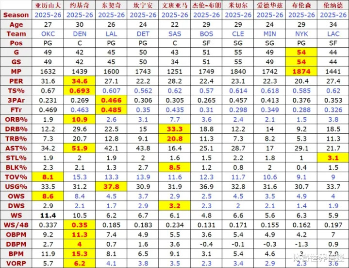 单看基础数据和高阶数据,约基奇是朝上于其他东说念主的。
