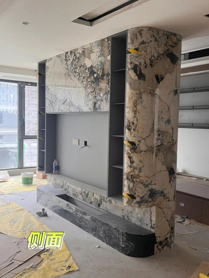 可这些配景墙,极少实用性齐莫得!造价高得离谱,更热切的是,太容易落后了,当年花几万块作念的大理石配景墙,现时看,土得掉渣。