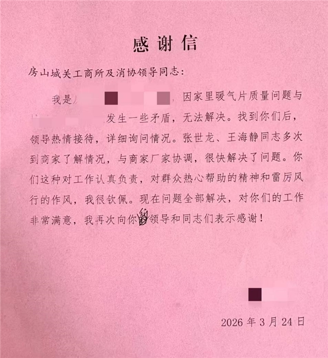 一纸感谢信,满满为民情