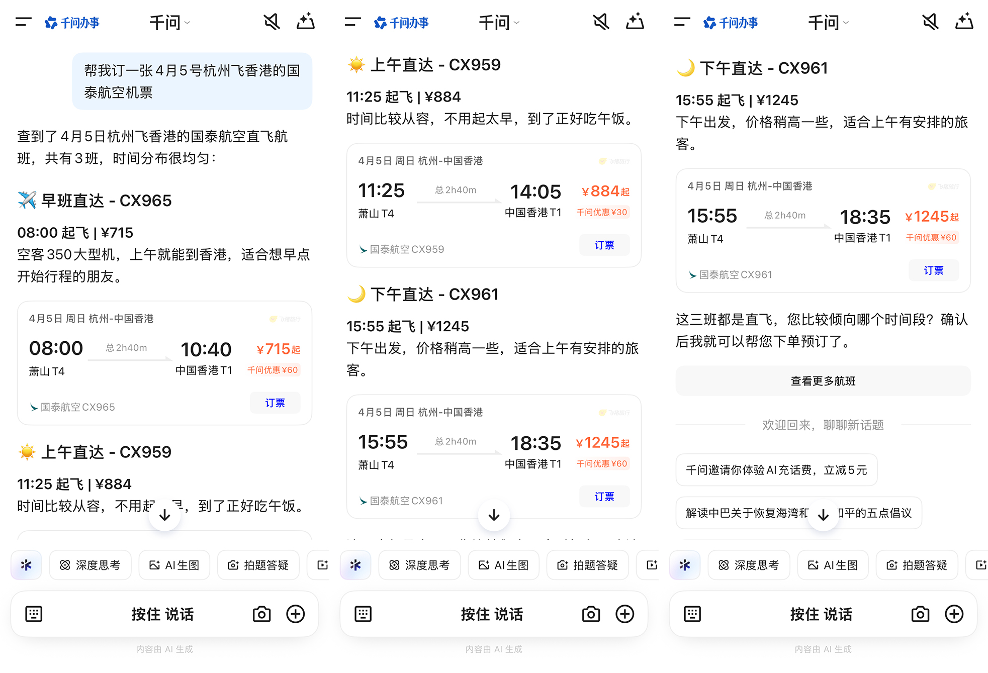 AI订旅行的施展特地亮眼。出行平台数据透露,春节假期飞猪的AI订单量环比增长超800%,其中AI订门票单量大增超24倍。这些AI订单中,机票平均每张成交价钱逾越700元、旅店平均每晚成交价钱接近300元。这讲解,高客单价、高决议资本的旅行服务与奶茶、餐饮、电影票等一样,在新兴的AI渠谈有相通蓬勃的人命力。