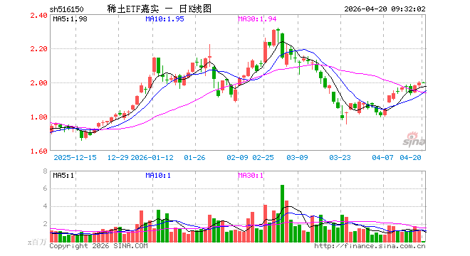 - 米兰 稀土ETF嘉实(516150)开盘涨0.00%, 重仓股朔方稀土涨0.16%, 金风科技跌0.98%2026-04-21